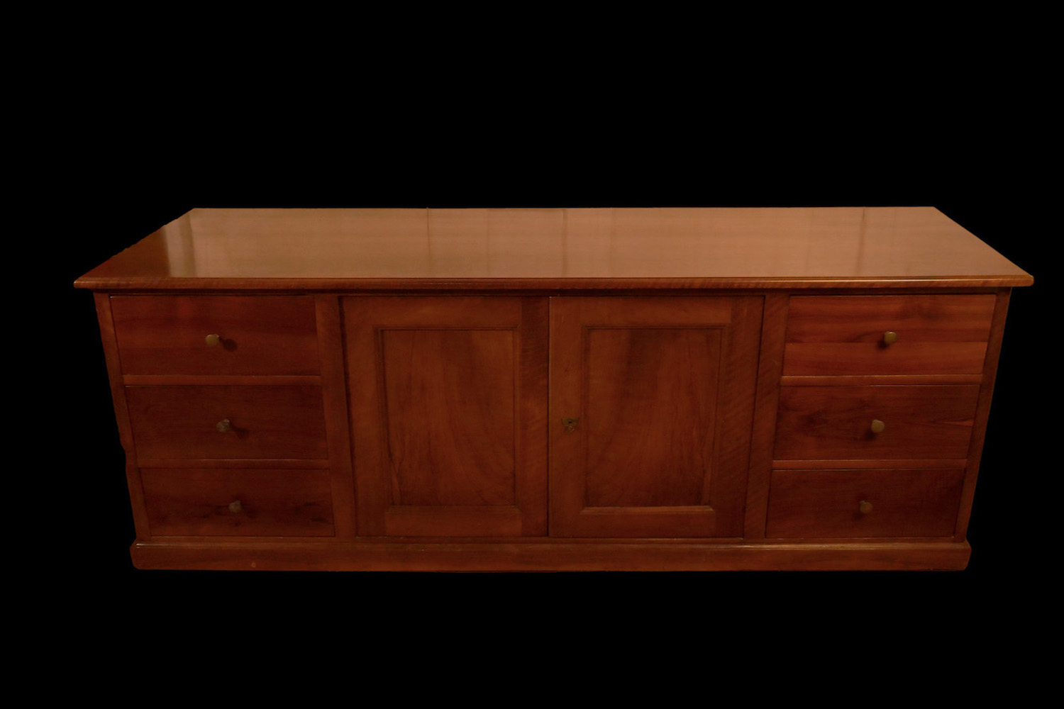 Ancienne banque en noyer Belle patine ancienne 6 tiroirs et 2 portes Long 197 x 42 H 50 Prix : CHF 930.-
