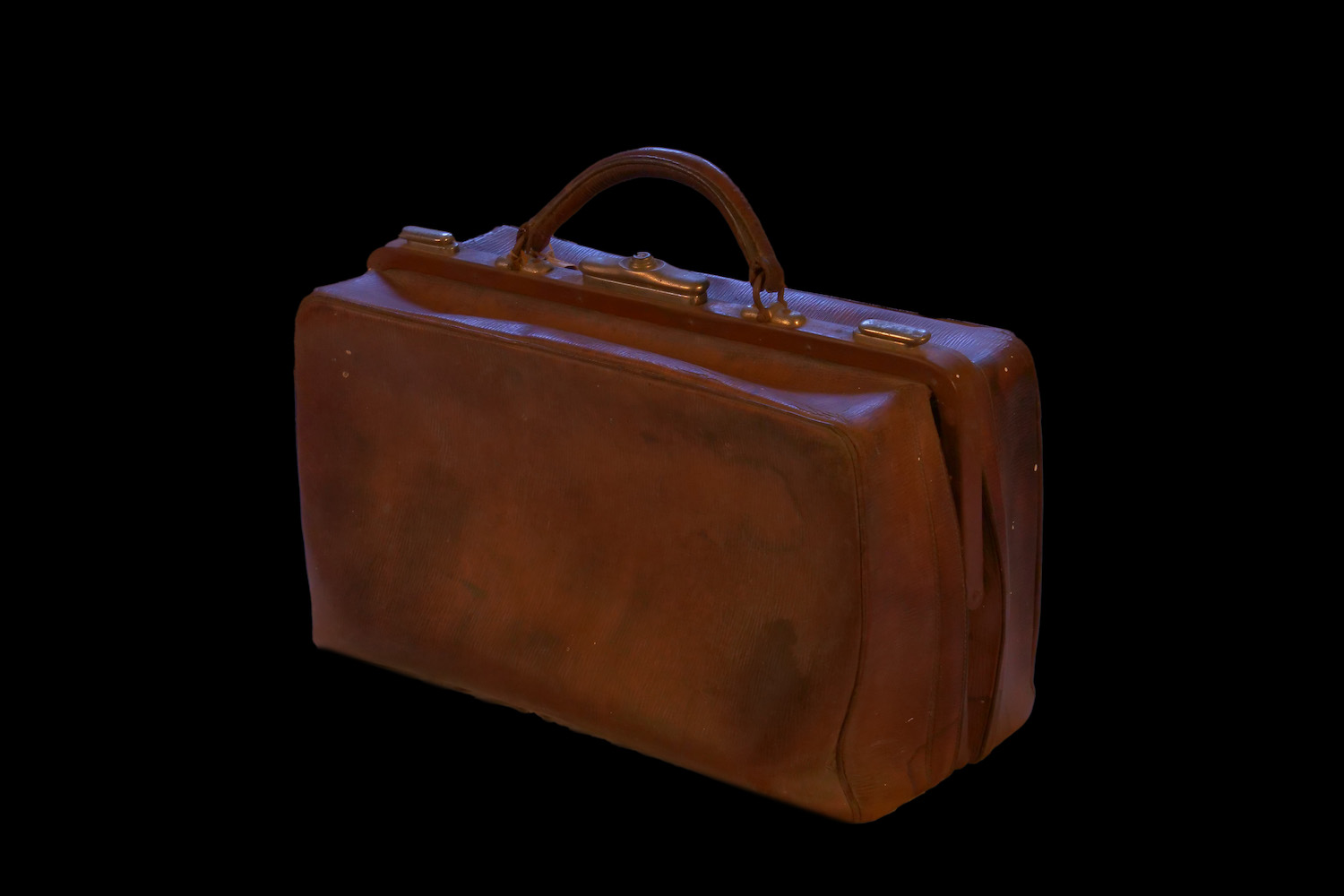 Grande malette de médecin En cuir épais Ferrures en laiton Dim :long 42 x larg 20 Haut 24 Prix : CHF 80.-