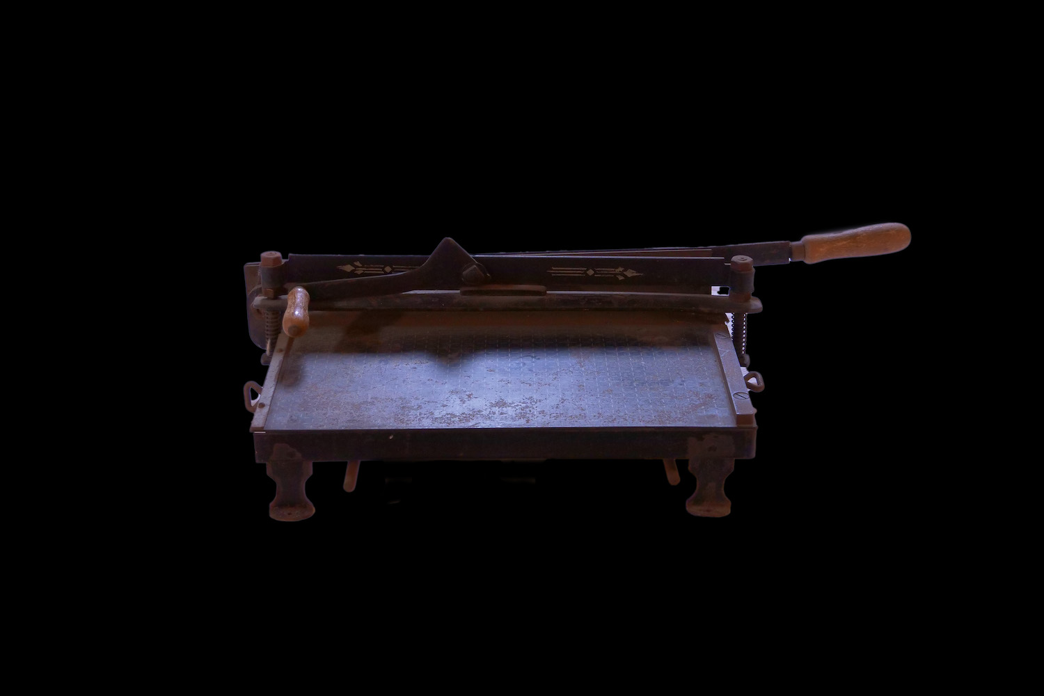 Usine de la Mulatière - Lyon Socle en bois, dessus de marbre, plateau en laiton Dim: L36 x P15 x H18 cm Prix: 130 CHF