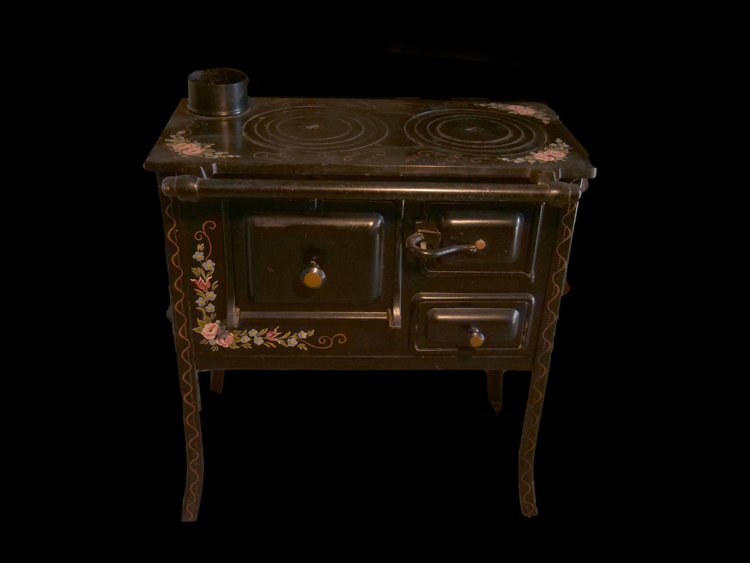 Jouets d'époque Sur socle à roulettes Dim Grand: L81 x l18 x H84 cm Dim Petit: L61 x l13 x H67 cm VENDU