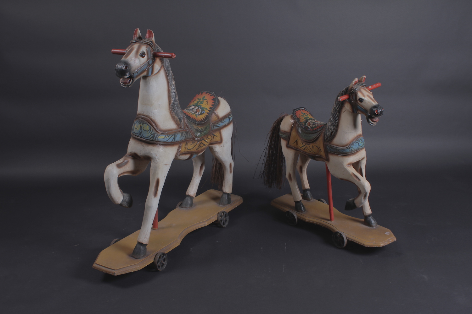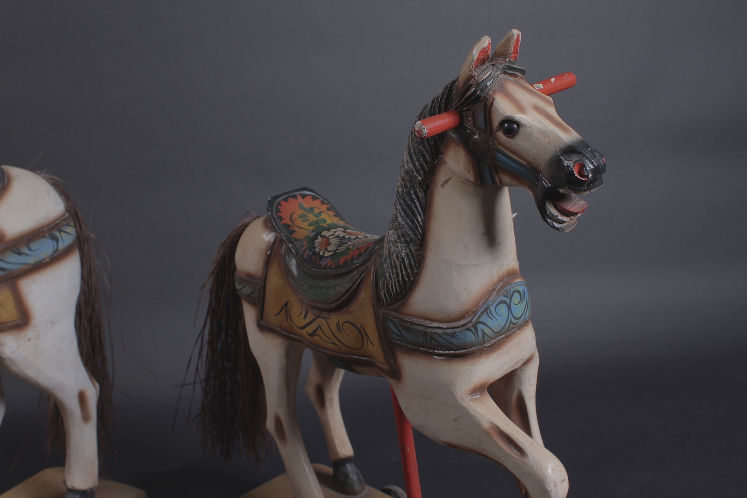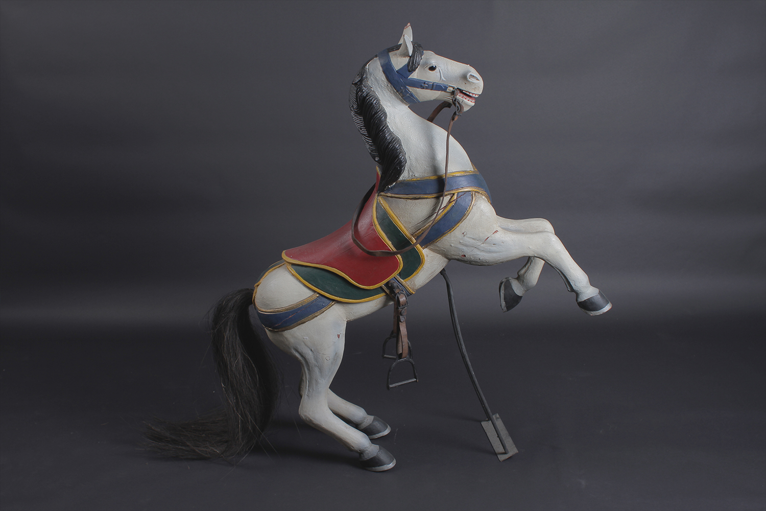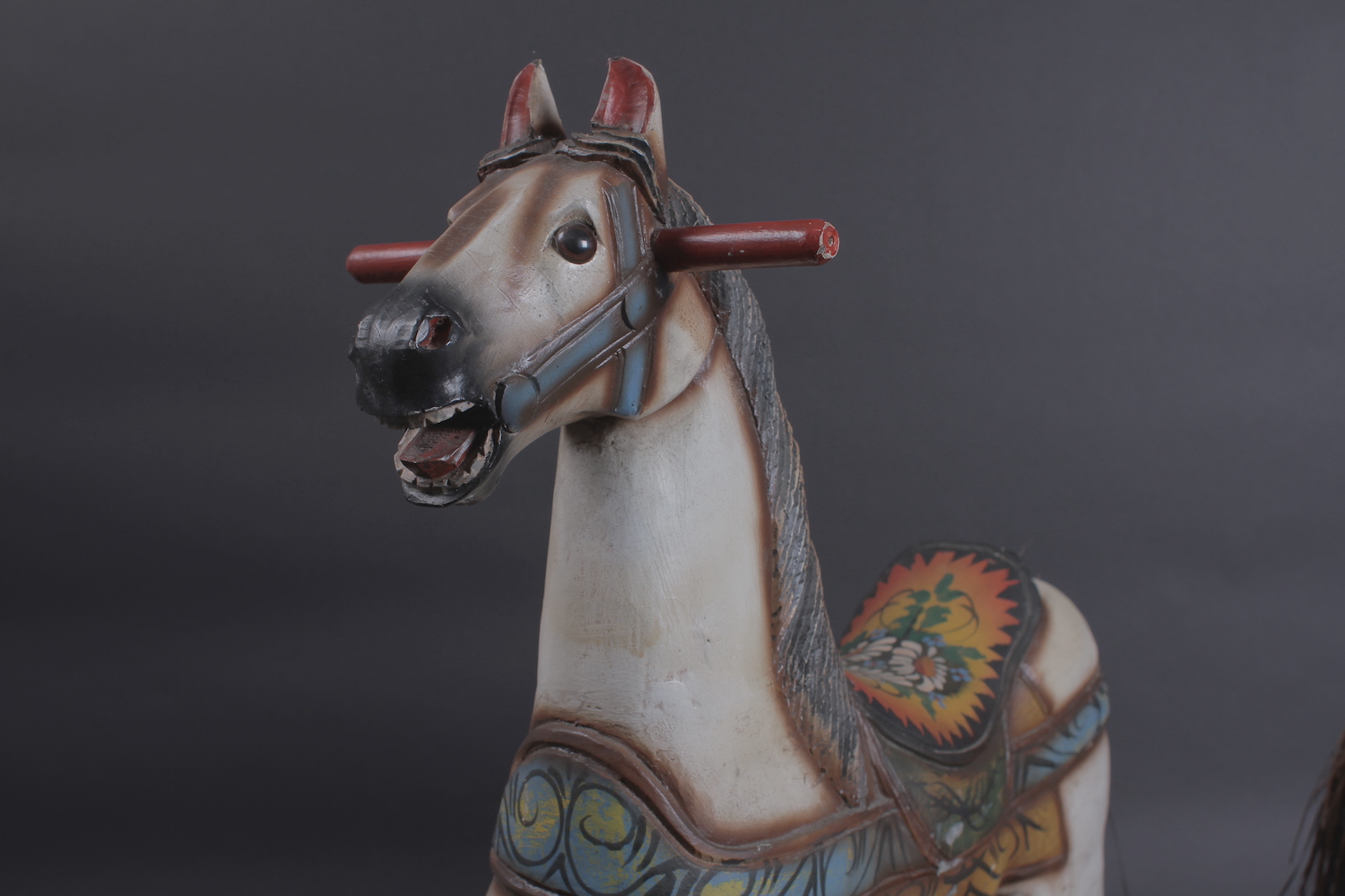 Cheval de manège d’époque En bois peint Restauration d'usage Dim: L95 x l20x H105 cm Prix: 1120 CHF
