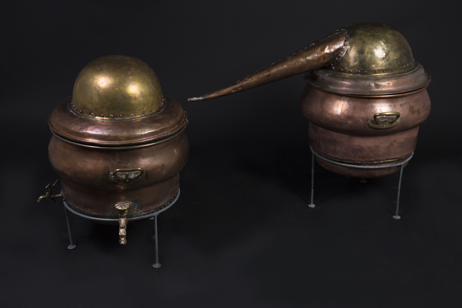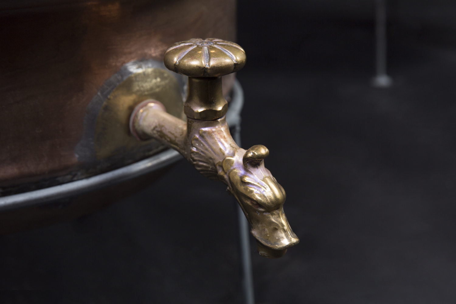 En cuivre et laiton Assemblage à la main A partir de cuivres de récupération Dim: D50 x H70 cm - L tot 150 cm Prix: 1450 CHF