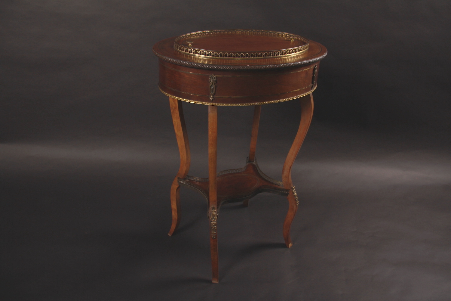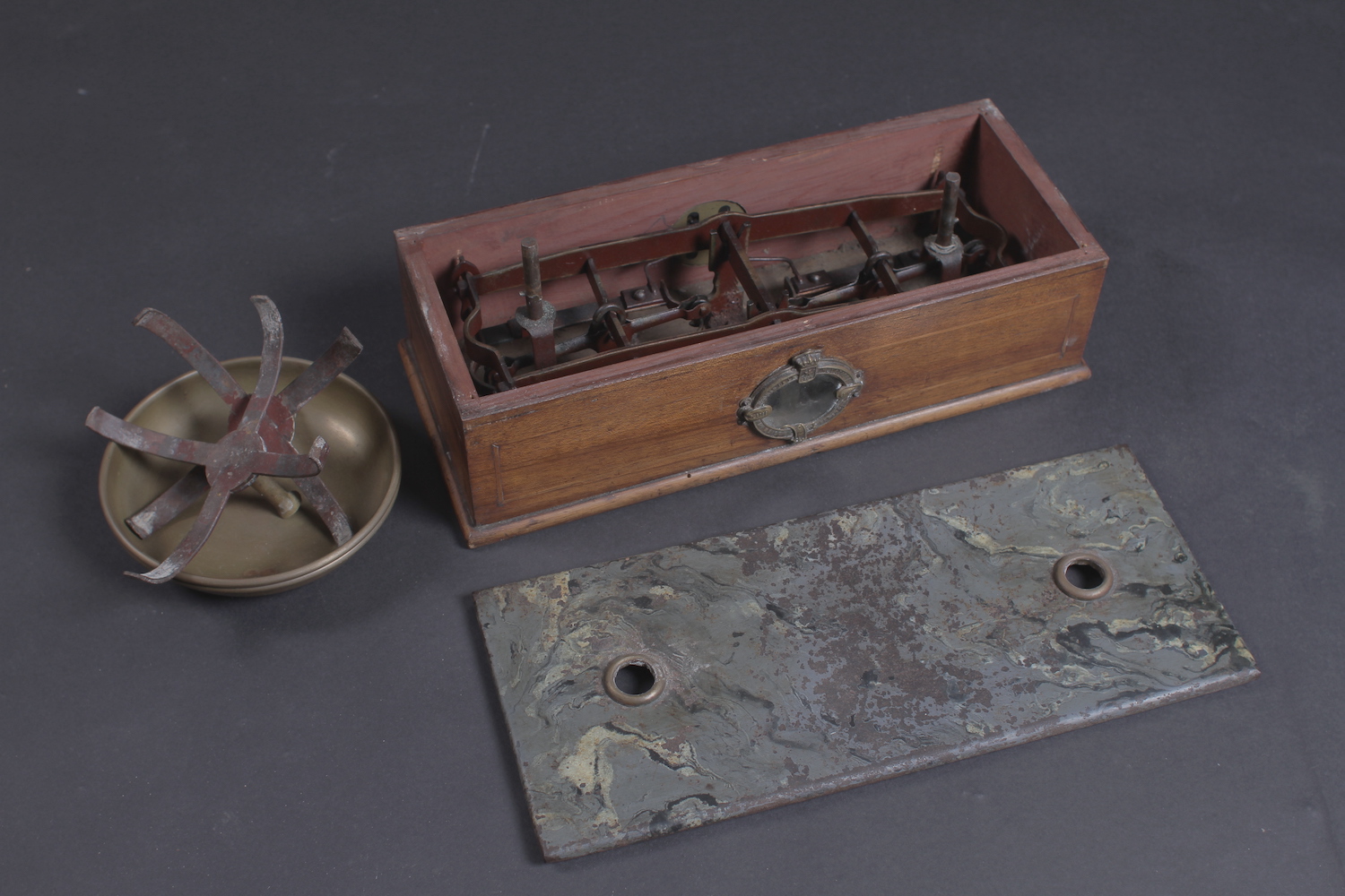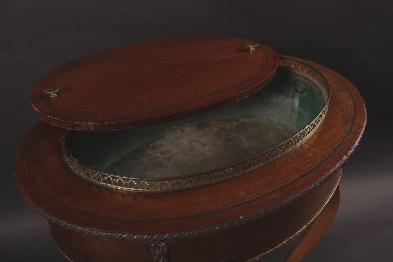 Fin 19e siècle Ornée de décorations en bronze Le couvercle est entouré d'une galerie en bronze Le bac en zinc à l'intérieur est fissuré Dim: L56 x P40 x H80 cm Prix: 420 CHF