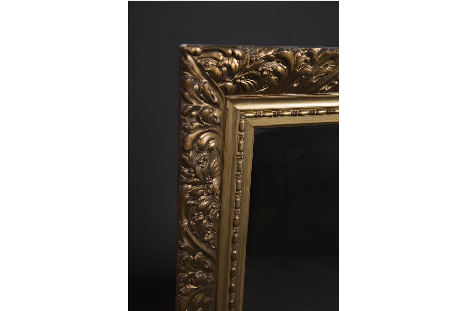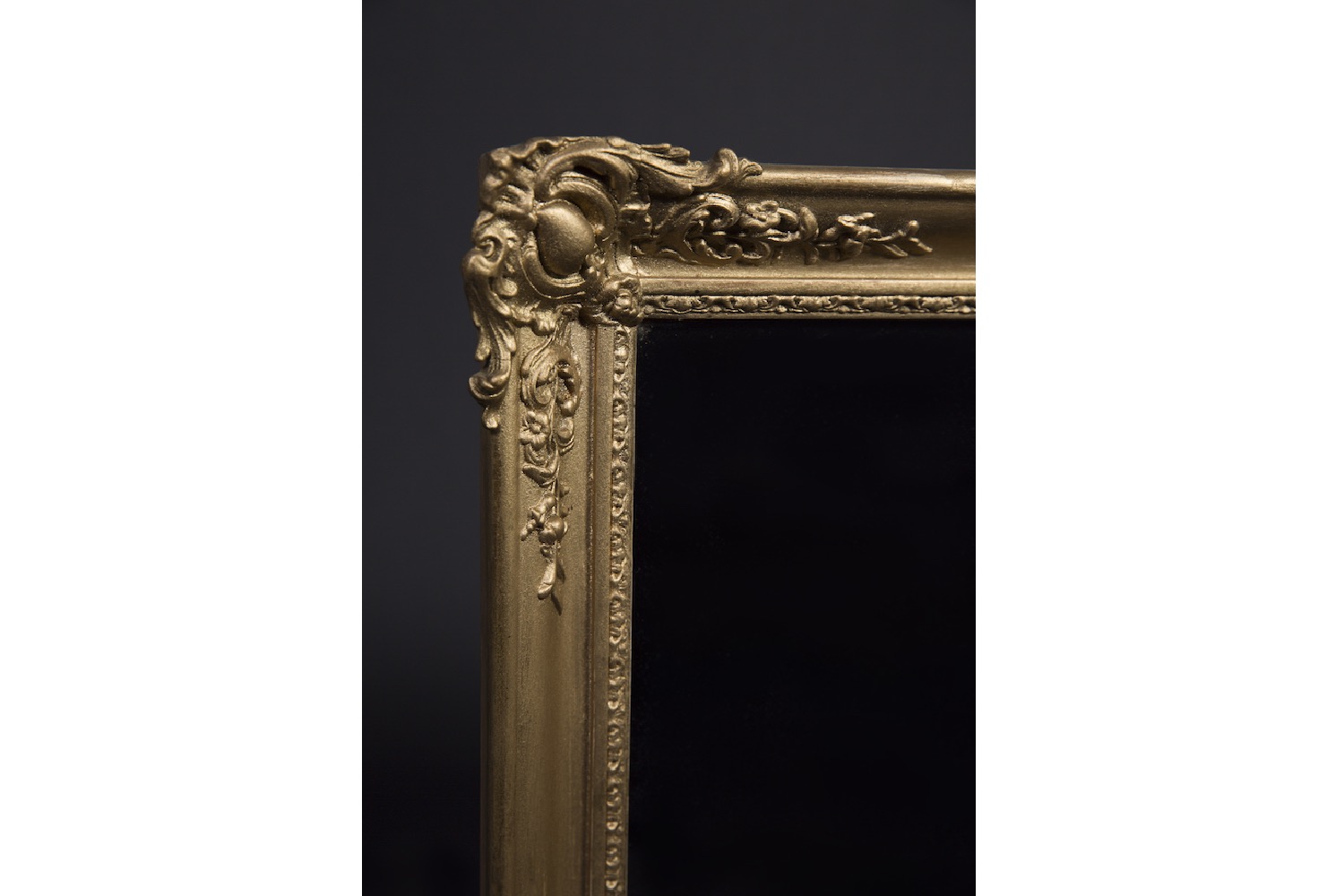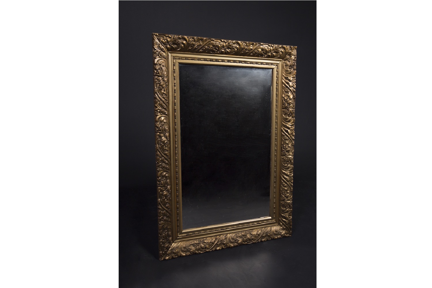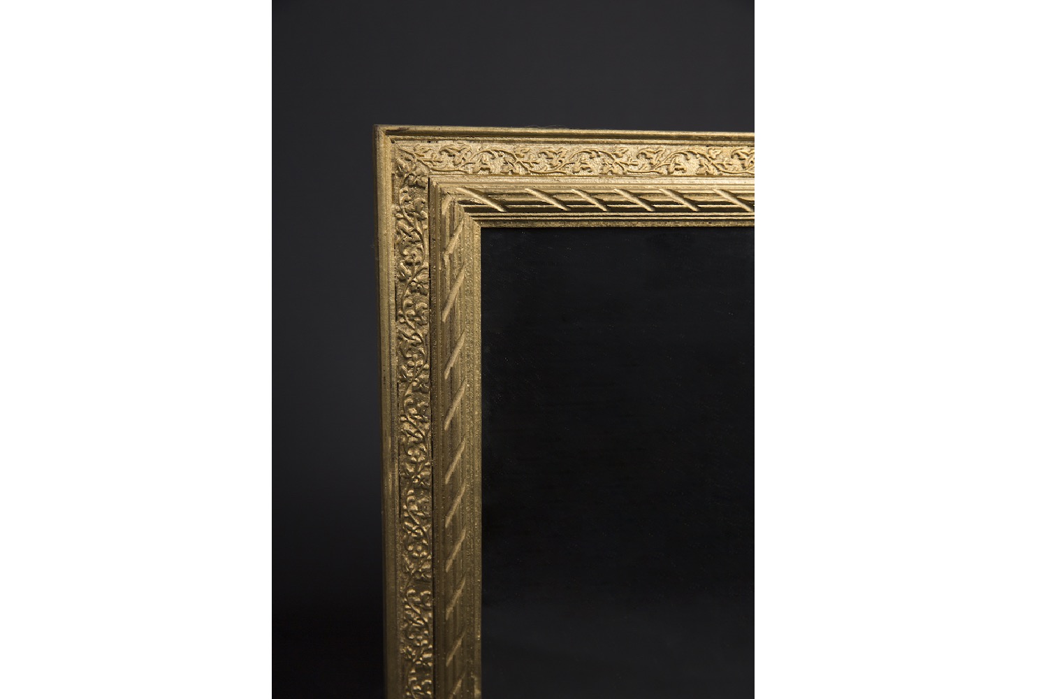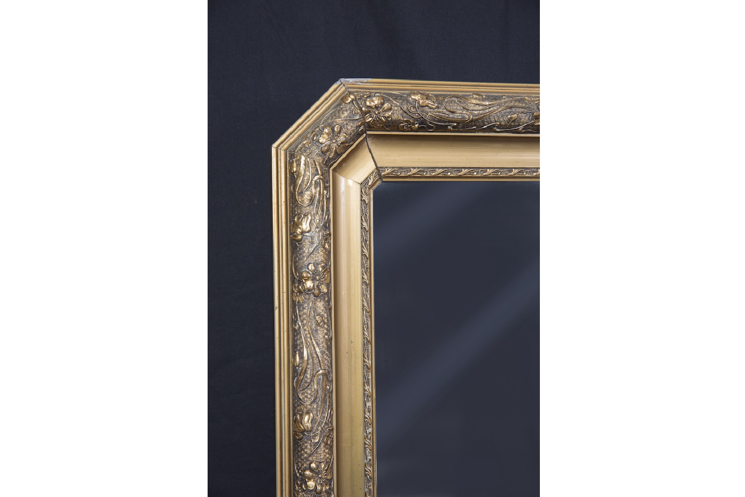 Cadre en bois et stuc doré à la feuille Glace d'argentique d'origine Dim: L40 x H54 cm Prix: 350 CHF