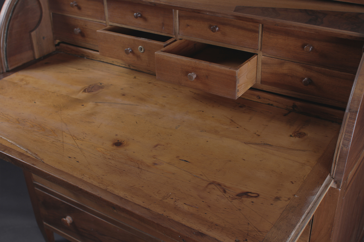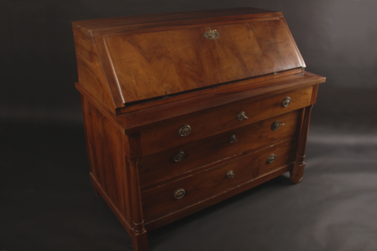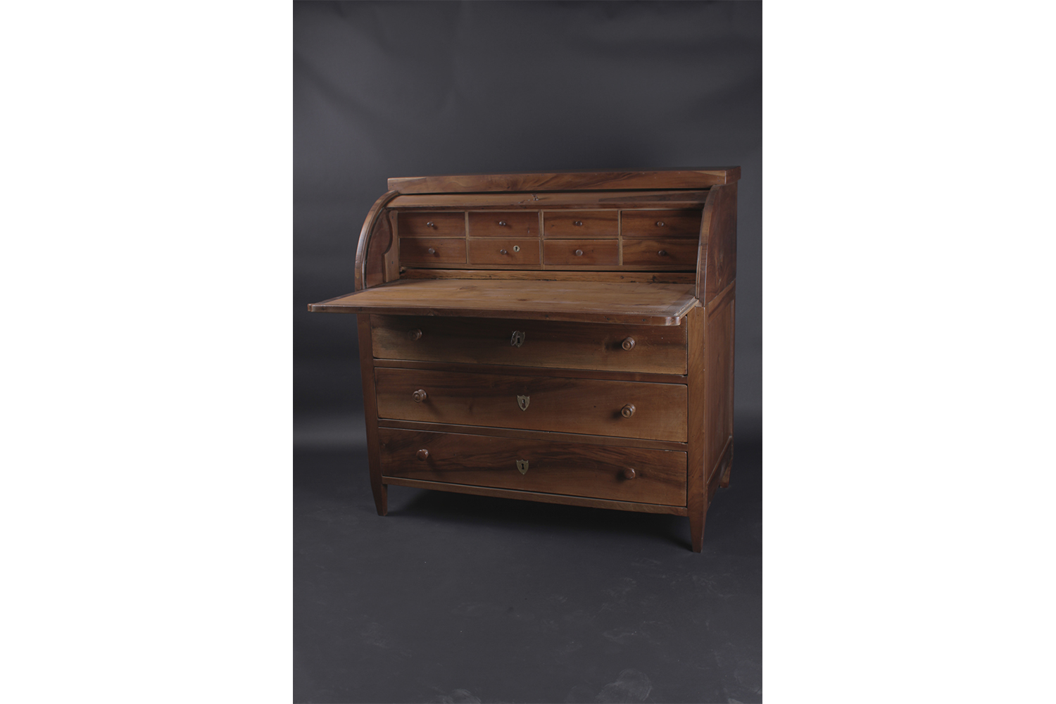 Directoire, 18e siècle En noyer et sapin 8 petits tiroirs dans le bureau 3 grand tiroirs dans la commode Dim: L122 xP67 x H120 cm Prix: 1400 CHF