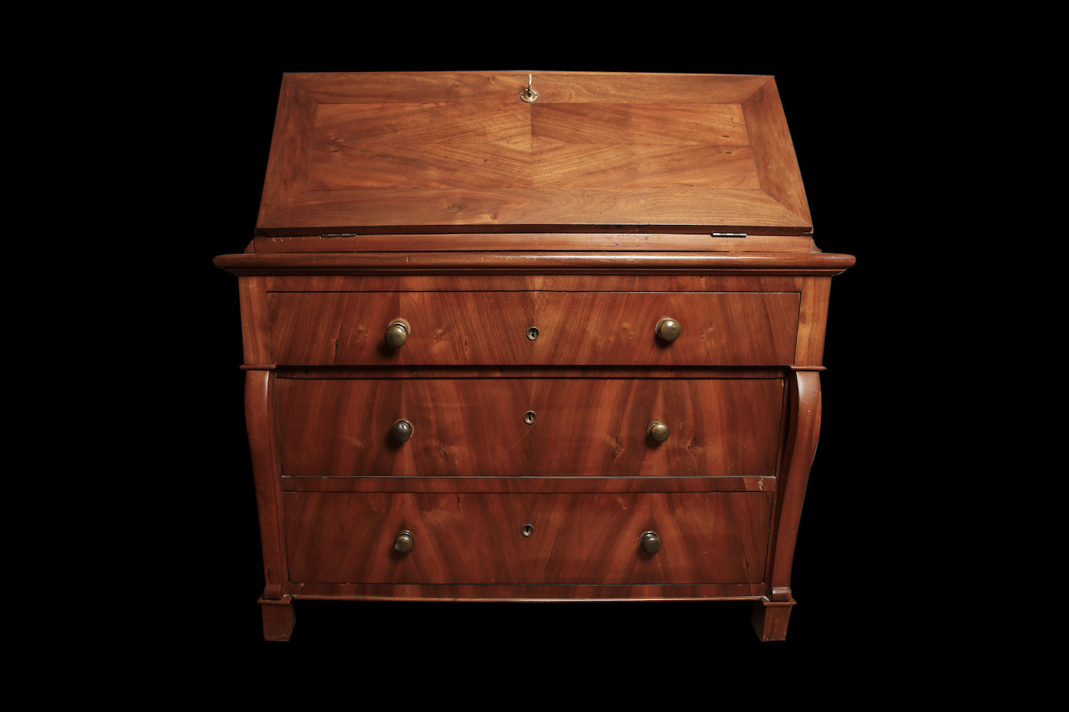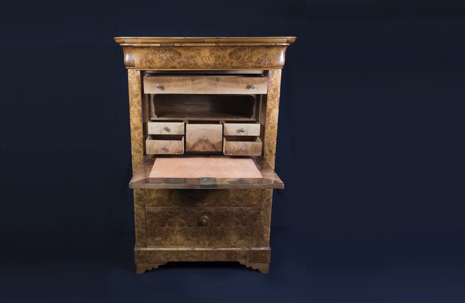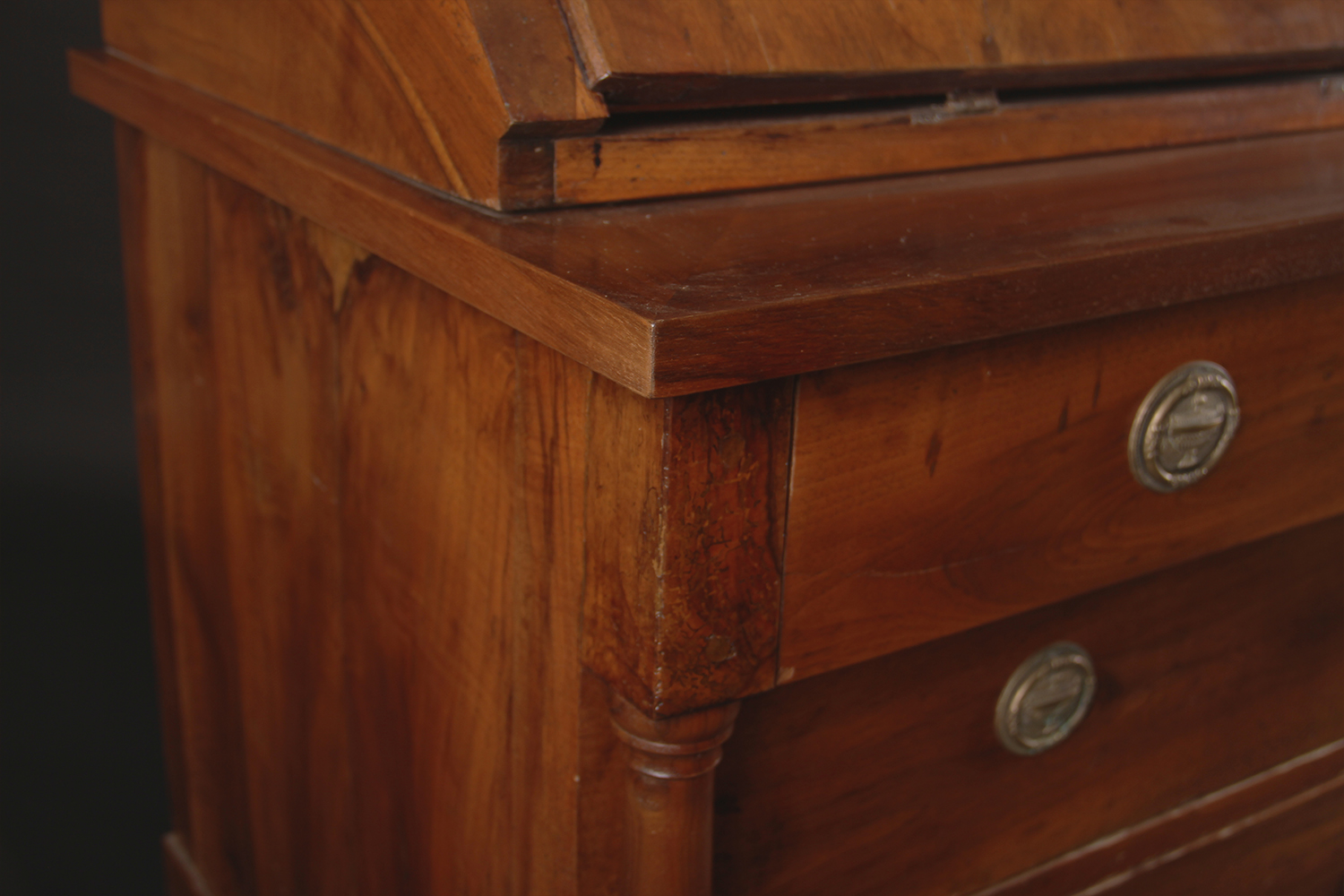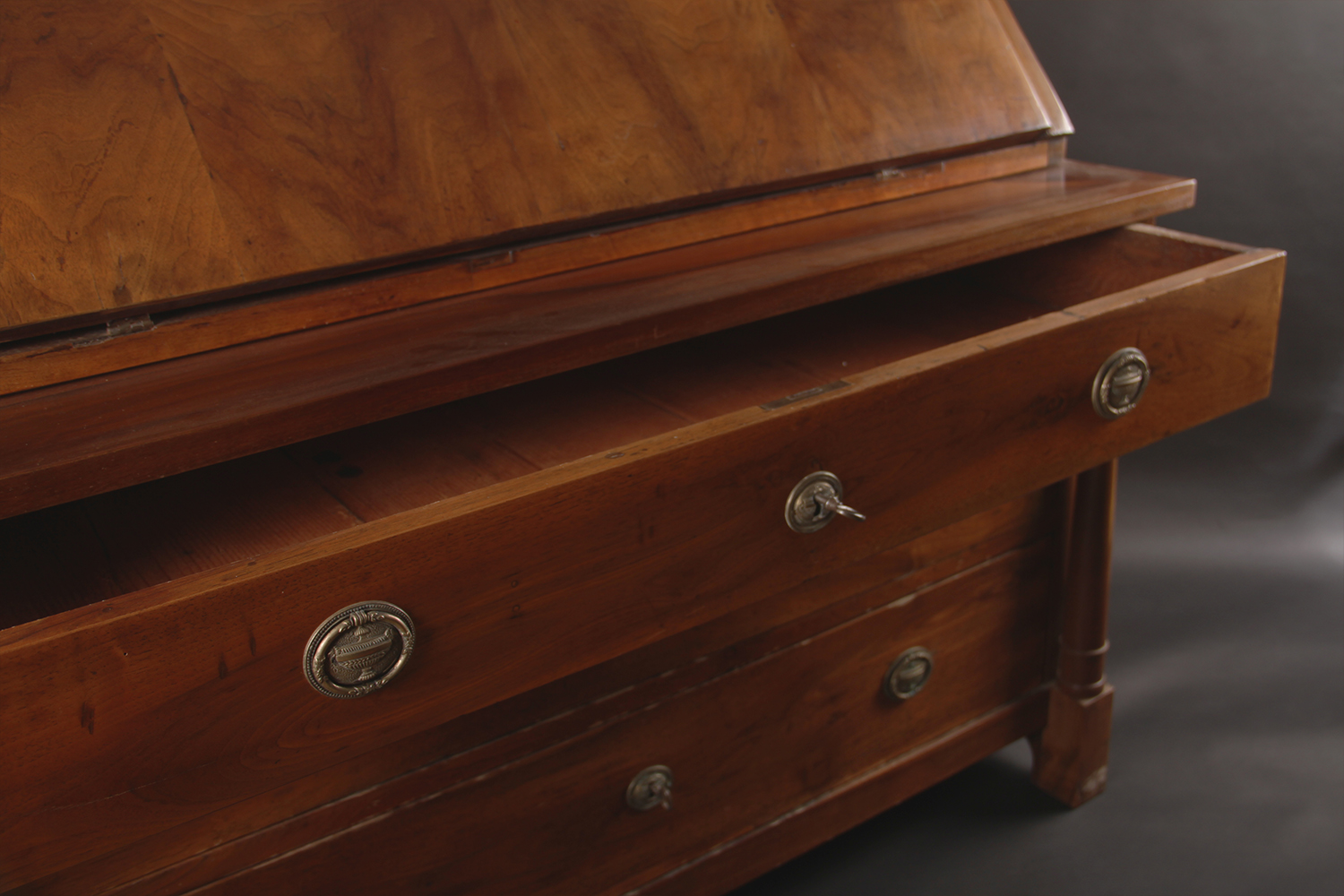 Directoire, 18e siècle En noyer et sapin 8 petits tiroirs dans le bureau 3 grand tiroirs dans la commode Dim: L122 xP67 x H120 cm Prix: 1400 CHF
