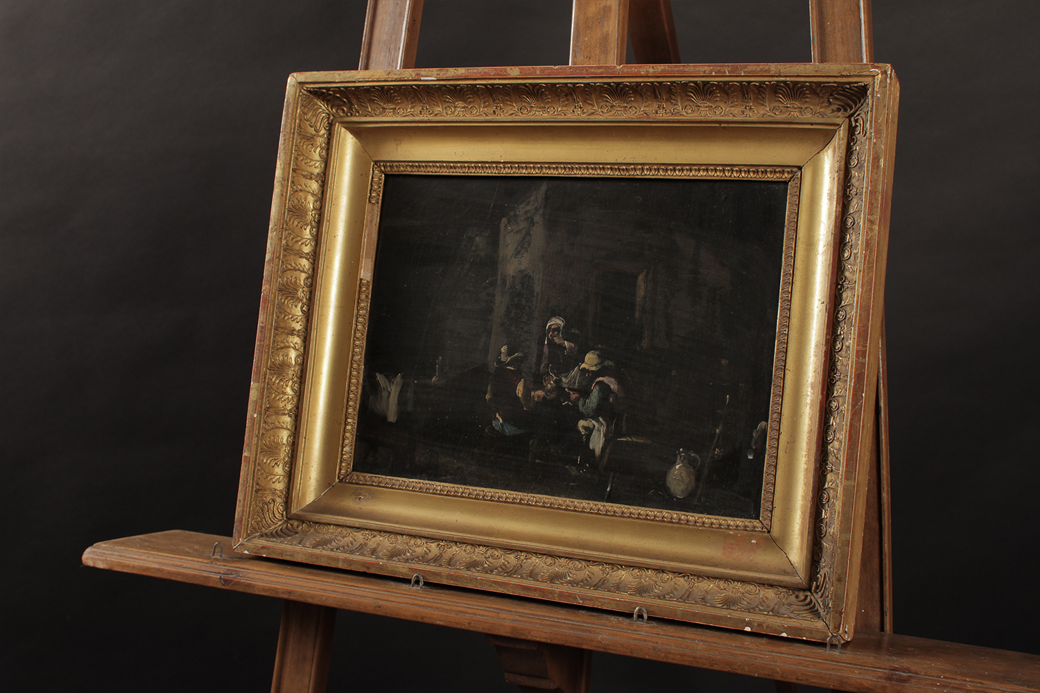 Tableau clair-obscur Représentant une scène de la vie quotidienne Dim: L45 x H37 cm